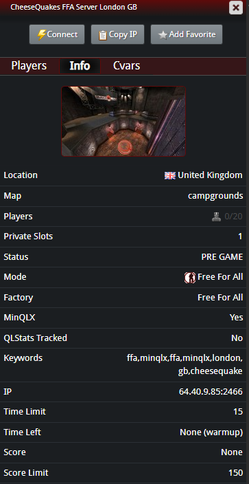 Hostname: CheeseQuakes FFA Server London GB