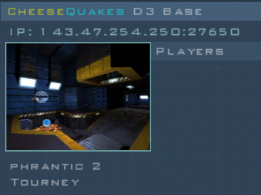 Hostname: CheeseQuakes D3 Base v1.3.1 Server London