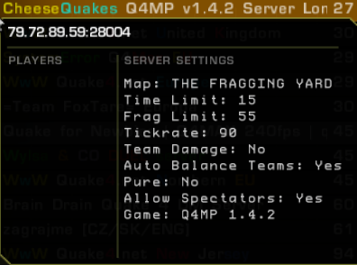 Hostname: CheeseQuakes Q4MP v1.4.2 Server London